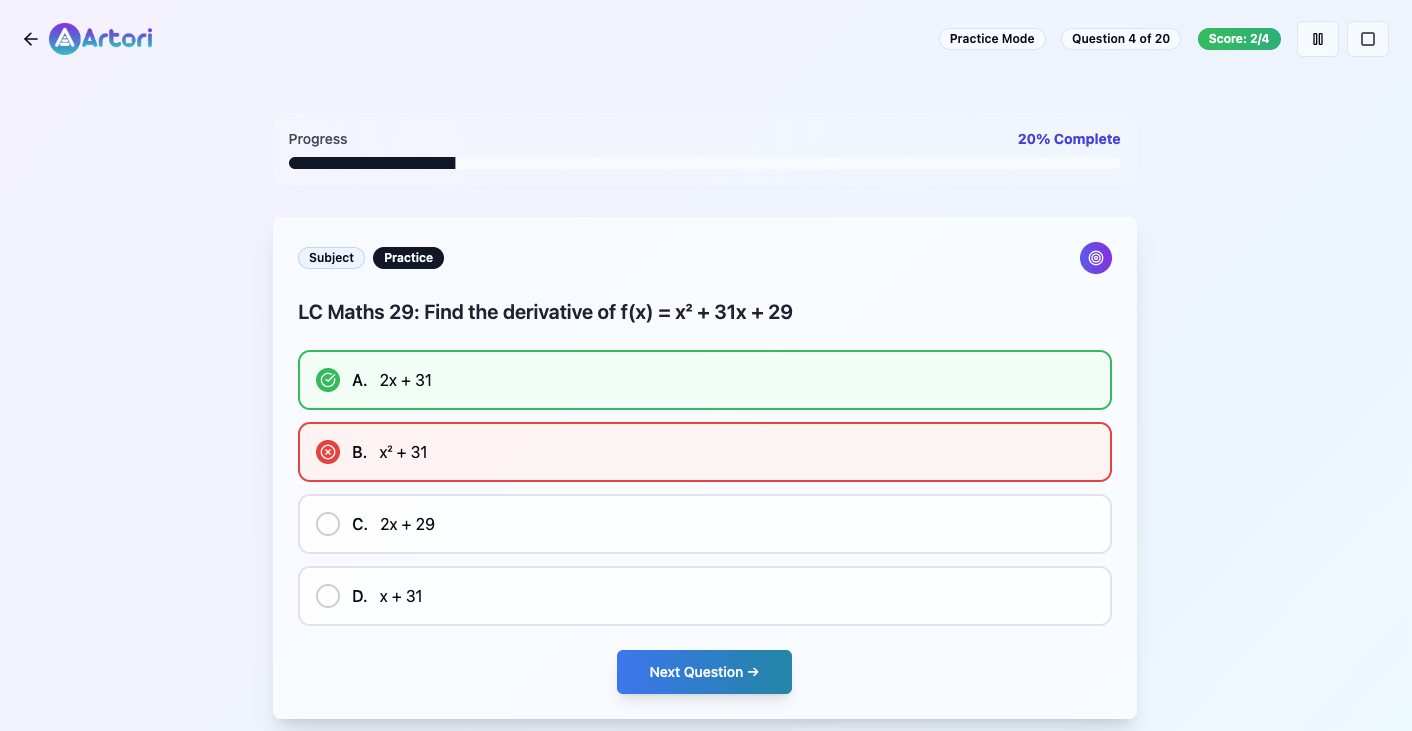 - Study Plan Suggestions: AI analyzes performance patterns and suggests next steps